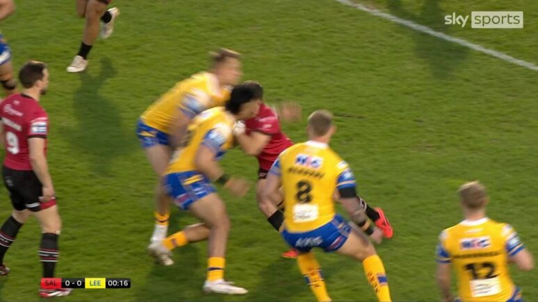 تم إرسال Keenan Palasia إلى Sin Bin 16 ثانية بعد مباراة Leeds Rhine ضد Salford Red Devils لاتصال الكتف على Chris Atkin.