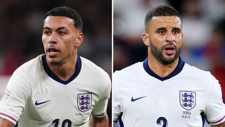 المصادر تعتقد كايل ووكر يؤدي إلى السباق في الجزء الخلفي الأيمن من إنجلترا ضد ألبانيا ، من قبل تينو ليفريو و ريس جيمسفي ما سيكون قبعة 94.