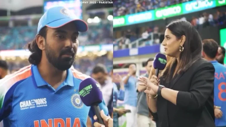 لعب Team India Wickketkeeper-Batter ، KL Rahul ، دورًا حاسمًا تحت الضغط في الحملة الفائزة لكأس أبطال ICC. بعد المباراة النهائية ، سأل مقدم التلفزيون سانجانا غانيسان ، التي هي أيضًا زوجة جاسبرت بومرة ، راهول عن تجربة إبقاء العدادات على الرباعية الدورانية الهائلة في الهند.