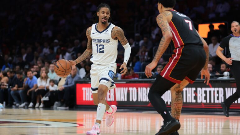 كان المؤشر الثلاثة الذي أدى إلى لفتة المسدس هو السلة الوحيدة التي صنعها Ja Morant في الربع الأول ضد ميامي هيت. ذهب 1 لمدة 4 لثلاث نقاط ومساعدة اثنين. كما ارتكب القائد انعكاسين في ممفيس غريزليس“ابدأ اللدغة. لقد جروا 27-22 في نهاية الفترة.
