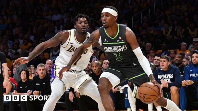 سقط لوس أنجلوس ليكرز في هزيمة 117-95 على يد مينيسوتا تيمبروولفز في المباراة الافتتاحية لأول جولة في الدوري الاميركي للمحترفين في مؤتمر الدوري الاميركي للمحترفين.