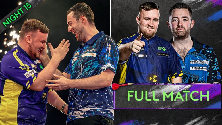 شاهد المباراة الكاملة للربع في ربع Luke Littler مع Luke Humphries في سهام الدوري الممتاز في Night 15 في Aberdeen.
