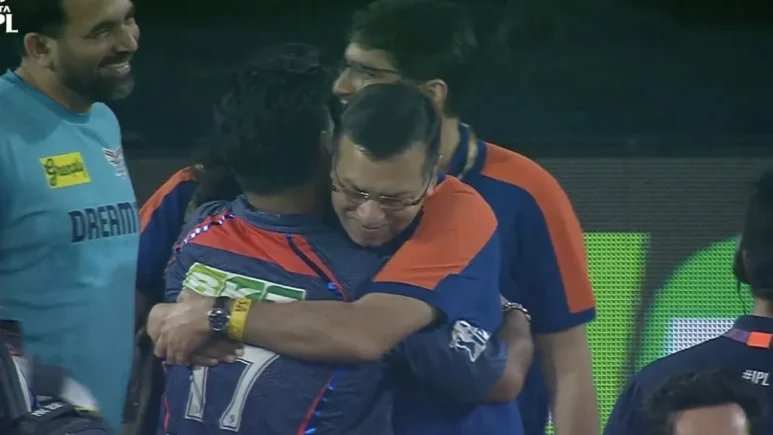 بعد علاج “KL Rahul” ، يتلقى Rishabh Pant عناقًا خاصًا من Sanjiv Goenka بعد الفوز ضد SRH
