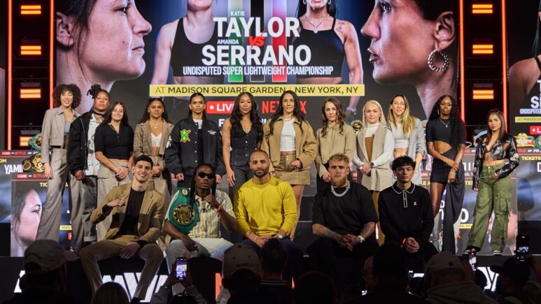 كاتي تايلور و أماندا سيرانو اليوم وضع وجهاً لوجه في المسرح في Madison Square Garden للمؤتمر الصحفي الرسمي لثلاثية طالبة ، على استعداد ل الجمعة 11 يوليوو الانتقال الحيوي في Netflix. الحدث ، الذي تمت ترقيته بواسطة العروض الترويجية الأكثر قيمة (MVP)بمناسبة الأولى بطاقة ملاكمة احترافية لجميع النساء في تاريخ MSG.