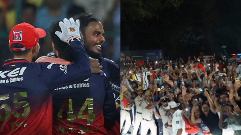بعد النهاية الدرامية ، تجمع بحر من المشجعين من RCB أمام ملعب السيد Chinnaswamy ، المحيط بحافلة الفريق والاحتفال بالانتصار المتنازع عليها بقسوة مع هتافات صاخبة ودعم لا يتزعزع.