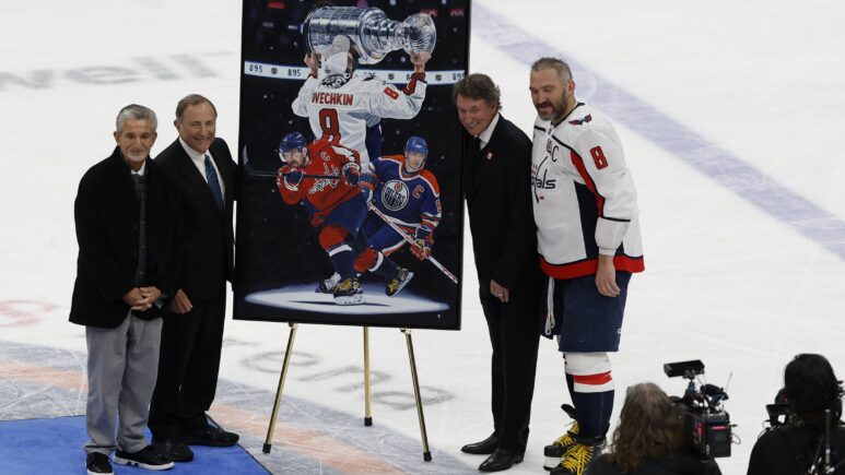بينما دخل Ovechkin إلى غرفة الخزانة بعد هزيمة 4-1 ضد أيسلندا في نيويورك ، كان زملائه في الفريق لا يزالون في مزاج احتفالي بعد وفاته واين جريتزكي لقائمة أهداف NHL في كل العصور.