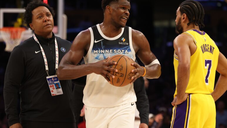 غادر أنتوني إدواردز مباراة المباراة الأولى يوم السبت بين مينيسوتا تيمبروولفز وليكرز مع إصابة في القدم اليسرى. كان من الممكن أن يكون إدواردز ضيقة وكان من الممكن أن يعود. لقد تحمل هبوطًا مؤلمًا على ساقه اليسرى في الربع الثالث وشرب من الأرض. بعد اتباع علاج في غرفة الخزانة ، عاد إلى المباراة في بداية الربع الرابع.