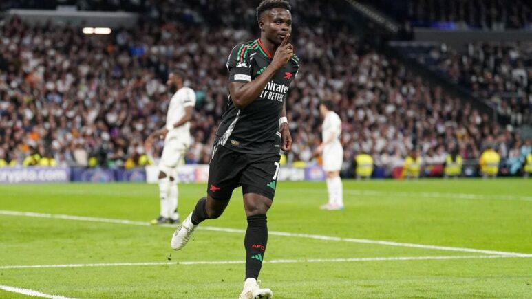 انتهت صلاحية بوكايو ساكا على نطاق مبكر من خلال تسجيل هدف في الشوط الثاني عندما فاز آرسنال 2-1 ضد ريال مدريد في برنابيو لتأمين مكانه في الدور نصف النهائي من دوري أبطال أوروبا.