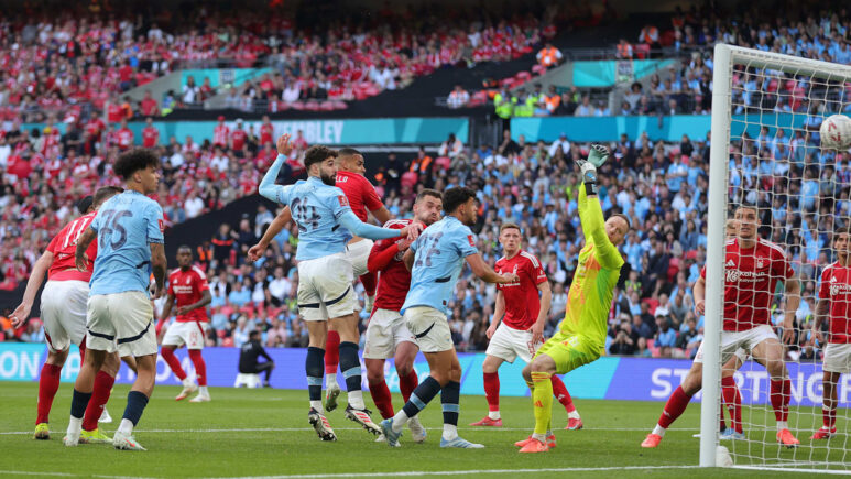 سيواجه مانشستر سيتي كريستال بالاس في نهائي كأس الاتحاد الإنجليزي الشهر المقبل بعد فوزه على نوتنغهام فورست 2-0 في ويمبلي بعد ظهر يوم الأحد.