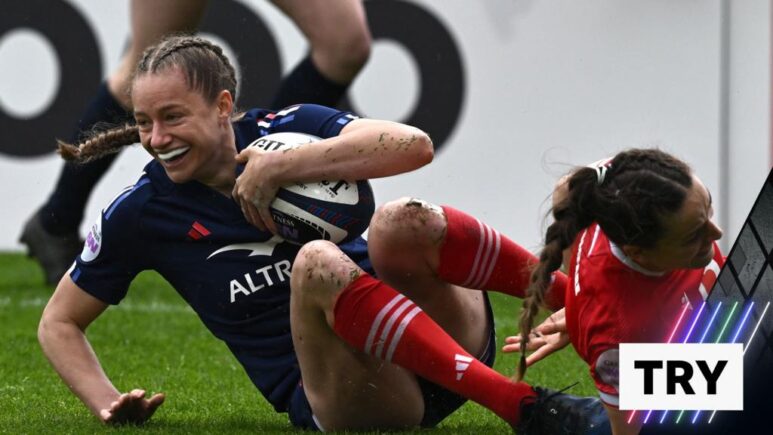 تجمع إميلي بولارد دي فرنسا ركلة الصليب “الجميلة” من كارلا آربيز لتسجيل محاولة فتح المباراة ضد ويلز في الدول الإناث الست.