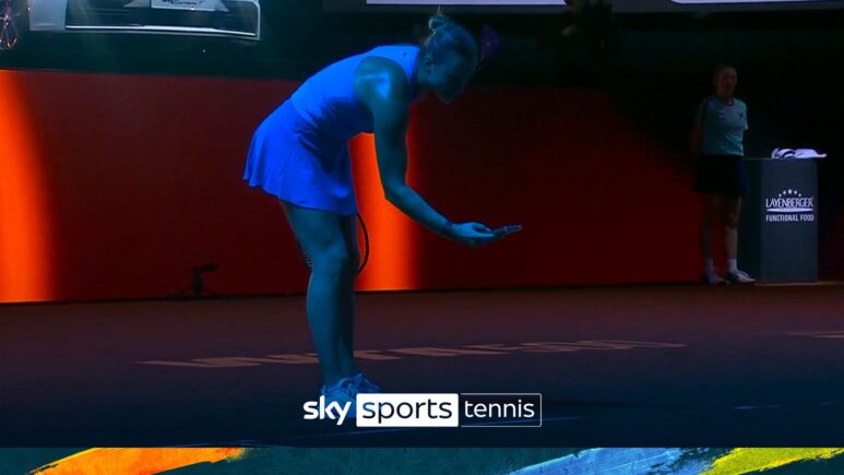 كانت أرينا سابالينكا غير راضية عن مكالمة من الحكم في مباراتها مع Elise Mertens ، لذلك التقطت صورة للعلامة التجارية بالكرة مع هاتف محمول!