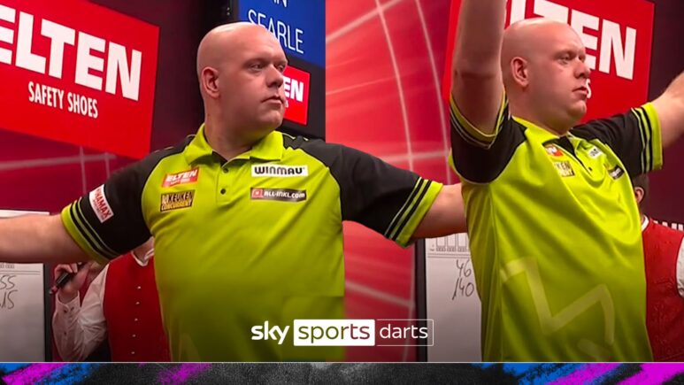 Michael Van Gerwen يضرب تسعة دارتر المثيرة في ميونيخ في Elten German Darts Grand Prix.