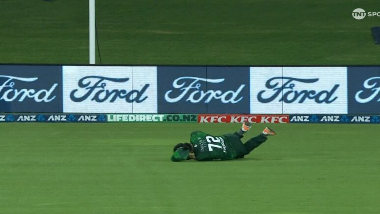 خلال الكرة الثانية الثانية خلال جولات نيوزيلندا ، رفض هاريس روف تيم سيفرت بمساعدة قبضة رائعة من خوشديل شاه.