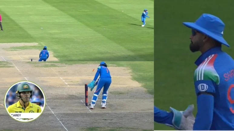 شاهد: إن ضربة شرياس آير المباشرة المذهلة تزيل أليكس كاري بينما تقيد الهند أستراليا في 264 في الدور نصف النهائي من كأس الأبطال