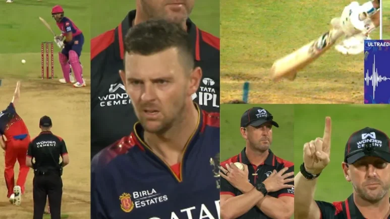 بينما كانت المباراة تقترب من أعلى نقطة له ، بدا RR جاهزًا للفوز ، dhruv مرساة المطاردة. في ما قبل الأخير ، بدا أن تسليم قاذفة RCB كان من يوركر كبير بدا أن جوريل قد فاته. كان الجاذبية في الحقل ضئيلًا وأبلغ الحكم عن وجود كبير. ومع ذلك ، أقنع جيتي ، الذي يقدم ضميرًا استثنائيًا ، القبطان راجات باتيدار اختر امتحان.