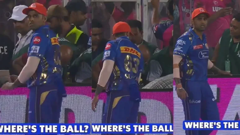 شاهد: Suryakumar Yadav رصدت بحثًا عن الكرة المفقودة بينما تتحول مباراة RR Vs Mi IPL 2025