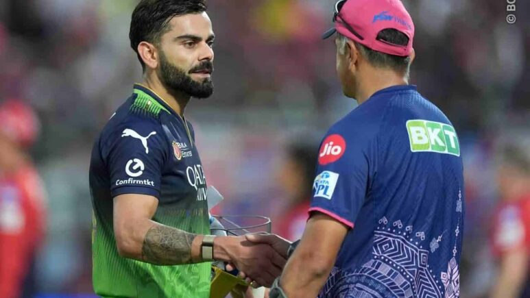 مطاردة 174 ، قام RCB بإغلاق الاتفاقية خلال 18 المبالغ ، وذلك بفضل Phil Salt و فيرات كوهلينصف قرن. أخذ لاعب التأثير كومار كارتكيا عدادًا لـ RR ، لكن جهوده كانت سدى.