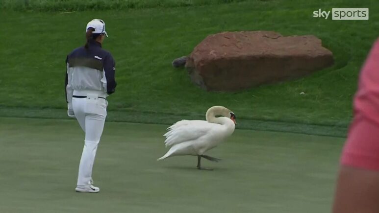 لا خوف! جين يونغ كو Shoos Swan قبالة Green قبل Putt