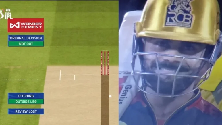 أجرى محادثة موجزة مع السيدة دوني قبل أن يطلب الأخير من جايكواد فحصه. ومع ذلك ، فقد أظهرت عمليات إعادة التشغيل أن الكرة قد أطلقت الساق خارجًا ونجت كوهلي. وكما أظهرت الشاشة العملاقة إعادة التشغيل ، لم يستطع Kohli المساعدة في الابتسام على مكالمة DRS.