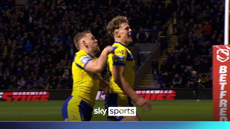 يصادف Arron Lindop اختبارًا مذهلاً باستخدام شريحة وسعي لوضع Warrington Wolves مقدمًا ضد وحيد القرن من Leeds.