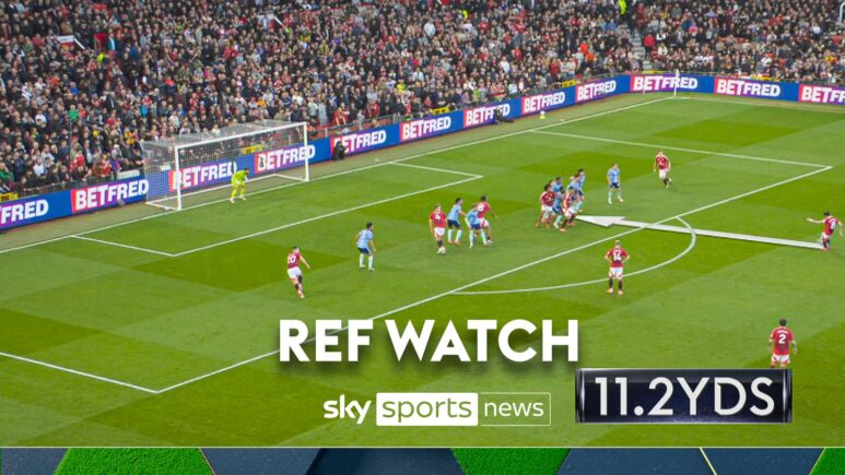 يوضح الحكم السابق للدوري الممتاز ، Dermot Gallagher ، عن كثب لماذا كان جدار الترسانة أكثر من 10 أمتار المطلوبة لافتتاح برونو فرنانديز ويوضح كيف اعتاد قياس المسافة!
