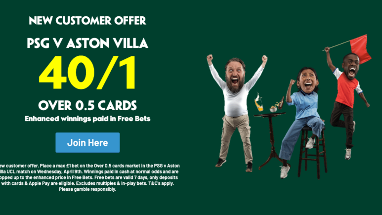 مرحبًا بادي باور – احصل على 40/1 على أكثر من 0.5 بطاقة في PSG vs Aston Villa