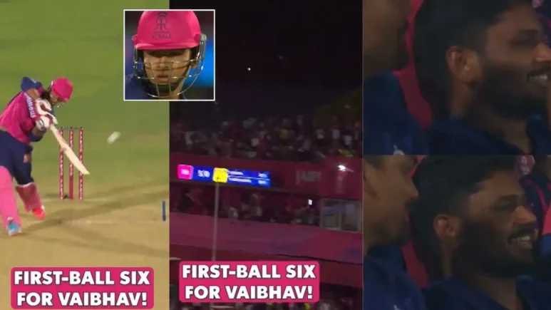 مشاهدة: Sanju Samson يتفاعل بشكل مدهش بينما يضرب Vaibhav Suryavanshi أول كرة له لمدة ستة في IPL 2025