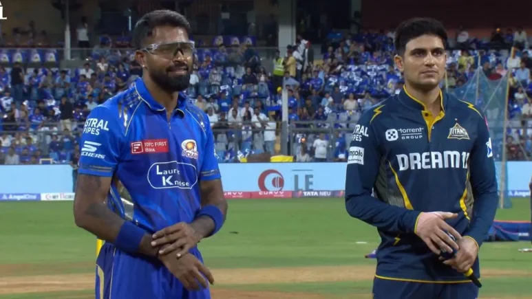 إن الهنود في مومباي (MI) ، من إخراج Hhedik Pandya ، يرحبون جوجارات جبابرة (GT) بقيادة شوبمان جيل في مباراة IPL 2025 في أوكتانا عالية في ملعب Wankhede في مومباي.