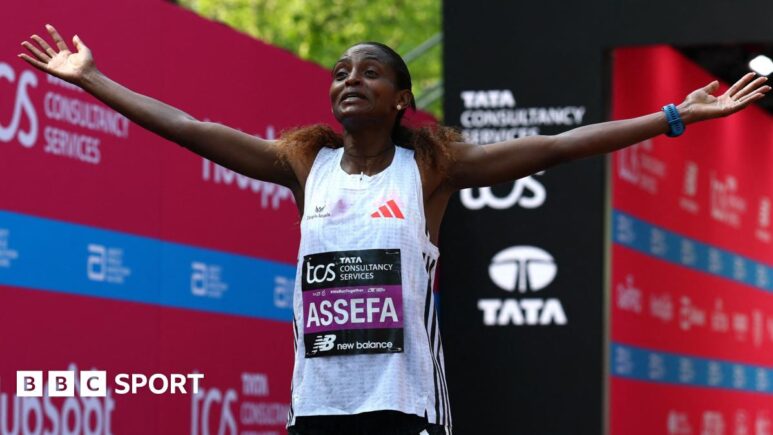 نتائج ماراثون لندن 2025: يفوز Tigst Assefa في السجل العالمي الوحيد للمرأة عندما يفوز Sabastian Sawe بالسباق الذكور