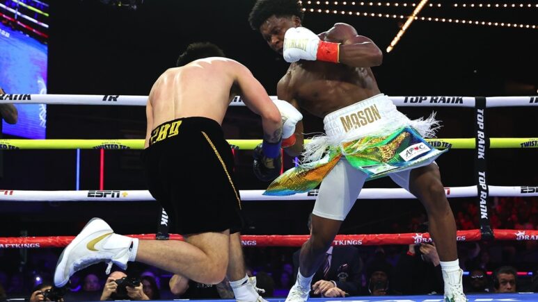 “بالتأكيد ، هذا هو بالضبط ما كان عليه” ، قال ماسون عندما سئل عما إذا كان إميليانو فارغاس بحاجة لرؤيته يسقط مرتين للحصول على ثقة بالنفس في رغبته في محاربه. “لم يقل أحد أي شيء عن أي نوع من القتال. نعلم أن لديه شعبه (قاعدة المشجعين) ، ولدي شعبي. ستكون هذه معركة كبيرة في المستقبل.”