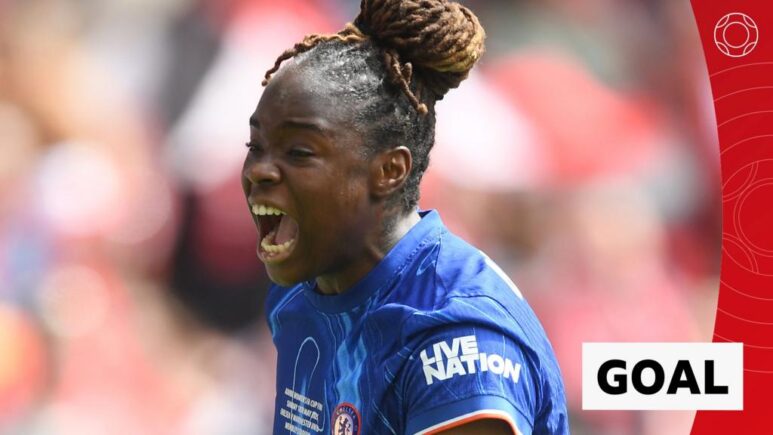 يرسل ساندي بالتيمور فاليون توليس جويس بطريقة خاطئة من المكان لإعطاء تشيلسي ميزة 1-0 على مانشستر يونايتد ، بعد أن تقرع سيلين بيزيت إرين كوثبرت في نهائي كأس الاتحاد الإنجليزي للسيدات.