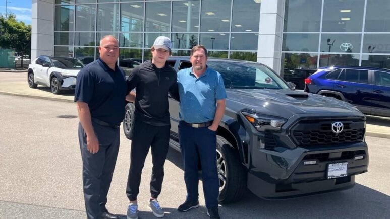 “يوم كبير في West Coast Toyota! لقد سعدنا بتسليم مفاتيح #ToyotataComa 2025 تمامًا إلى @MackCelebrini – أحد ألمع #RisingStars of #Hockey!”