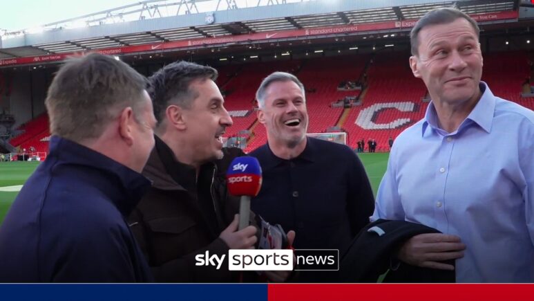 استأنف غاري نيفيل مقابلة مع Sky Sports News قبل Derby Merseyside لشواء Jamie Carragher حول وضع العقد مع محمد صلاح وفيرجيل فان ديك.