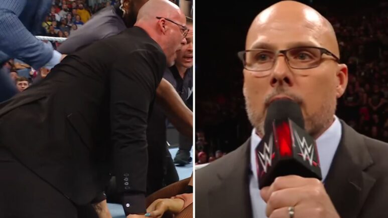 كمنتج وكبير WWE اصطحب النجم جيسون جوردان بيكي لينش ، بدا آدم بيرس في الحلبة باشمئزاز. ومع ذلك ، فإنها مجرد ليلة أخرى للمدير الإداري Brut ، الذي اعتاد على التعامل مع الفوضى في القائمة.