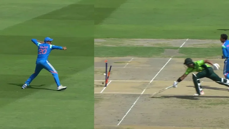 يقوم Axar Patel بتنفيذ ضربة مباشرة رائعة لرفض الإمام الحاق في Ind vs Pak Clash