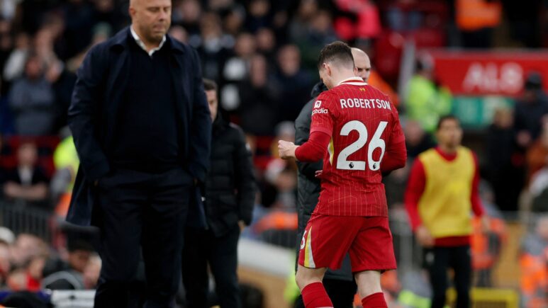 يصبح من الصعب بشكل متزايد انتقاد النادي عندما يجلسون على عرش الدوري الإنجليزي الممتازلكن ليفربول – التاج أو لا تاج – لم ينته بعد المنتج تحت الشق. لقد جعلتهم قواتهم في بعض الأحيان غير مسبوقة ، لكن نقاط ضعفهم أكدت أنها لا يمكن اختراقها تمامًا وأن جزءًا كبيرًا من نقاط الضعف هذه سقطت على جانبهم الأيسر مع ترخيص روبرتسون الرقيق.