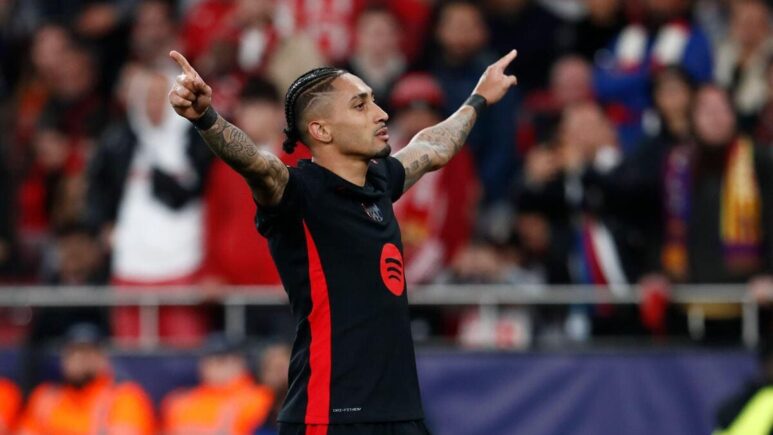 كان Raphinha يمثل ضربة طويلة رائعة في الوقت الذي تغلب فيه برشلونة على Benfica للحصول على ميزة رقيقة من المرحلة الأولى على الرغم من معظم اللعبة مع 10 رجال.