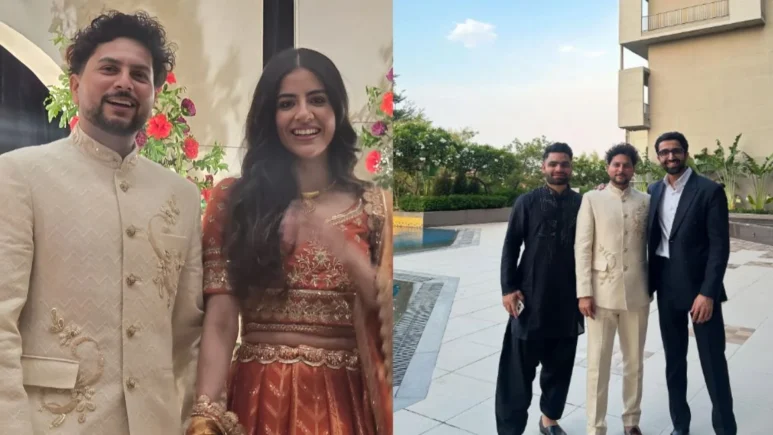 لاعب الكريكيت الهندي كولديب يادافاحتفل بإتقانه بالكرة ، احتفل بمرحلة شخصية مهمة يوم الأربعاء عندما انخرط مع صديق طفولته ، فانشيكافي حفل موحد للغاية عقد في لكناو.