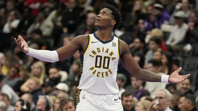 دفع بينيدكت Mathurin من إنديانا بيسرز مشهدًا بريًا في المباراة الرابعة من مباراة الدور نصف النهائي في المؤتمر الشرقي ضد كليفلاند هورسين يوم الأحد. تم طرد ماثورين بعد أن ضرب هنتر مع “قبضة مغلقة” في الربع الأول.