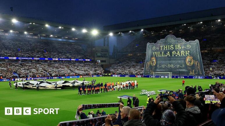 تم لعب ترنيمة دوري أوروبا على نظام السلطة الفلسطينية بينما كان اللاعبون محاذاة في فيلا بارك يوم الثلاثاء ، قبل تغييره إلى ترنيمة دوري أبطال أوروبا.