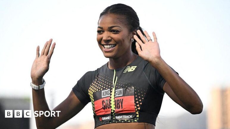 فاز البطل الأولمبي غابي توماس بالسباق الأول في الحدث الافتتاحي لبطولة جراند سلام في كينغستون ، جامايكا.
