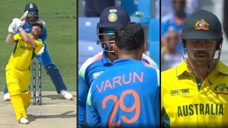 Ind vs AUS (Watch): Varun Chakravarthy يزيل رأس Travis الخطير في أوله على | كأس الأبطال 2025 نصف النهائي 1