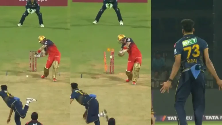 فتح زقاق البولينج لـ GT ، لم يكن سيراج وقتًا يمكن أن يكون له تأثير. في الثالث ، واجه سولت ، الذي أشار بالفعل إلى نيته ببعض الهجمات. سرياج ، المعروف بإيقاعه الناري وطاقتها التي لا تحصى ، سلمت كرة خياطة غير واضحة ترتفع فجأة. الملح ، الذي يسعى للسيطرة ، قد حكم على الخط والطول بشكل سيء ، وتحطمت الكرة في إطفاءها ، وأرسلها. اندلع حشد Chinnaswamy ، وهو مزيج من الموالين RCB ومؤيدي GT ، بينما يرتفع الملح إلى الجناح.