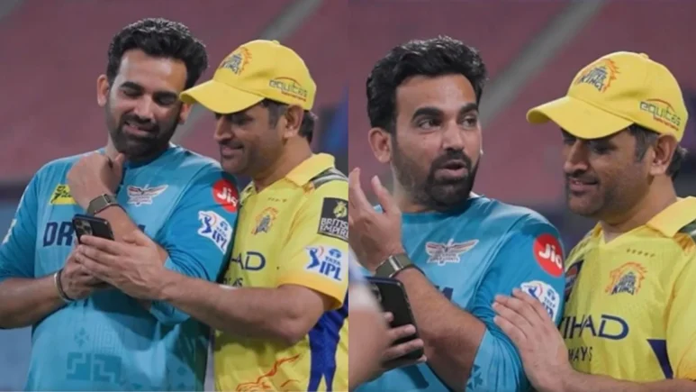 IPL 2025 (Watch): Cricket Legends MS Dhoni و Zaheer Khan يجتمعان في لحظة مريحة بعد فوز CSK على LSG