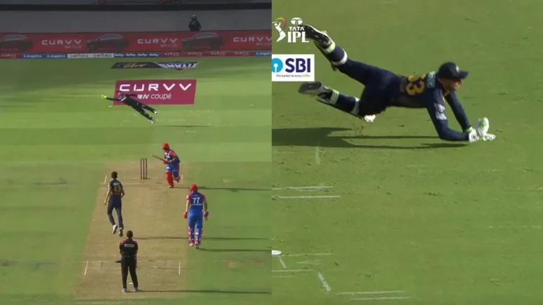 Jos Buttler Amazing Catch Flying لإرسال حزمة Vipraj Nigam في GT Vs DC Clash