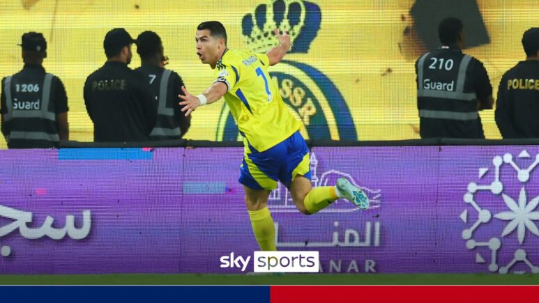 احتفل كريستيانو رونالدو بالفائز المثير للآل نصر في مباراته ضد الرياض في دوري المؤيد السعودي.