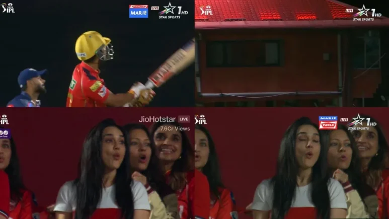 ضربت الكرة سقف المبنى وخرجت من الملعب. بالنظر إلى هذا الحد الأقصى ، كانت مالكة PBKs ، Preity Zinta ، مندهشة عندما كانت تسير “Ohhhhh”.